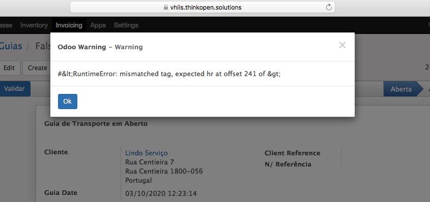 Erro na emissão de guias - exemplo Vhils